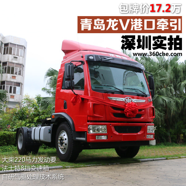 隨著港口城市的快速發(fā)展,4x2中小馬力的牽引車是港口集裝箱運(yùn)輸?shù)闹髁姟2贿^(guò)說(shuō)起解放品牌的港口牽引車,想必大家對(duì)J6M、悍V、新悍威的車型比較熟悉,如果說(shuō)起龍V港口牽引車或許就有些陌生了,這款車是青島解放今年主打的港口車系列產(chǎn)品之一,具有輕量化的特點(diǎn)。近日,小編在走訪深圳市廣鵬通汽車銷售有限公司時(shí)就了解到一款龍V牽引車,經(jīng)銷商給出的包牌價(jià)為17.2萬(wàn)。