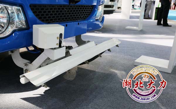 在此車(chē)的前部安裝有前清洗裝置,噴嘴噴射出的高壓水流能夠完成對(duì)路面的清洗任務(wù)。此外該裝置能夠上下轉(zhuǎn)動(dòng)12°、左右偏擺各18°,有效提高了清洗的效率,增加了作業(yè)寬度。
