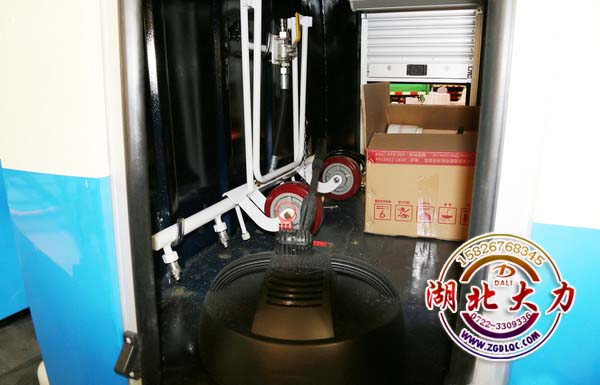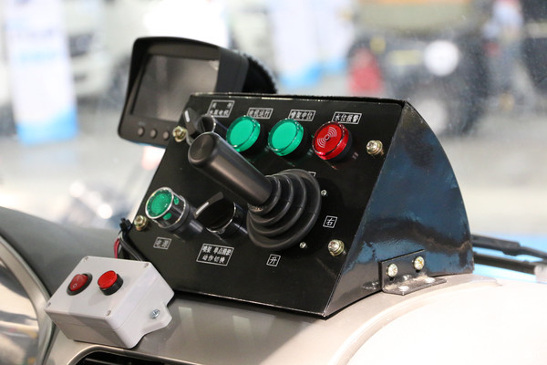 在駕駛室內(nèi)部有柱狀單點(diǎn)清洗裝置,其操作均為全電控制。可以進(jìn)行上、下、左、右全方向擺動(dòng),適用于道路局部衛(wèi)生死角的清除。在操作面板上還有水位報(bào)警指示燈。