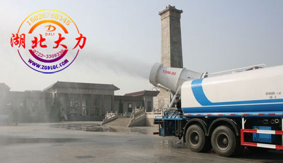 多功能抑塵車的主要工作原理是,遠程霧化噴霧器通過特制的高壓霧化系統和雙管環(huán)形噴圈,將常態(tài)化的水珠霧化成微小的水霧顆粒,再利用自身的加壓裝置將水輸送至噴頭,由風機將霧化的水珠顆粒拋射至規(guī)定距離,形成霧化噴灑。噴射的水霧能對懸浮在空氣中的粉塵顆粒進行有效地吸附、聚合,使粉塵受重力作用沉降,可以將空氣中的PM10和PM2.5降低15%到20%。