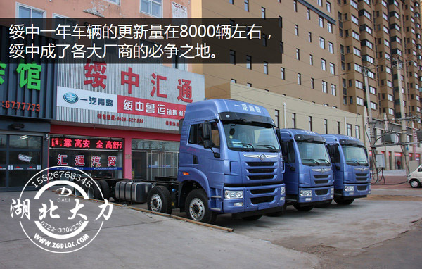 綏中一年車輛的更新量在8000輛左右,綏中成了各大廠商的必爭之地,在綏中各個品牌的卡車經(jīng)銷商基本都能看見。其中解放的在當?shù)氐谋S辛磕苓_到80%,當?shù)貙τ诮夥诺钠焚|(zhì)還是比較認可,在綏中的大街上J6隨處可見,而且以領(lǐng)航版居多。