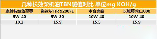 酸性氣體在柴油機工作過程中持續(xù)產(chǎn)生,所以機油什么時候酸化添加劑失效才是該換機油的重要指標。所以長效機油的TBN(總堿值)都會調(diào)配的略高。那么說了半天,好像還沒講到這和加小油有什么關(guān)系,我們接著看這個表格。