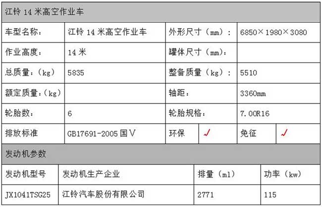 江鈴14米高空作業(yè)車(chē)詳細(xì)配置及參數(shù)說(shuō)明 |