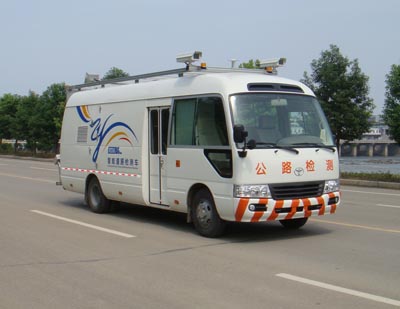 道路檢測車集成和應(yīng)用了現(xiàn)代信息技術(shù),以機動車為平臺,將光電、IT和3S技術(shù)集成一體。在車輛正常行駛狀態(tài)下,能自動完成道路路面圖像、路面形狀、道路設(shè)施立體圖像、平整度及道路幾何參數(shù)等數(shù)據(jù)采集、分析、分類與存儲。為高速公路、高等級公路、城市市政道路、機場跑道等路面的破損、平整度、車轍、道路安全隱患的檢測,及道路附屬設(shè)施的數(shù)字化管理提供有效的數(shù)據(jù)采集手段。