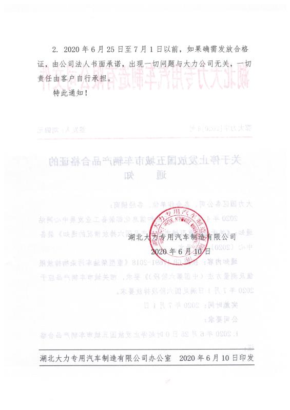 Tag:湖北大力 大力汽車 大力公司 公告 合格證