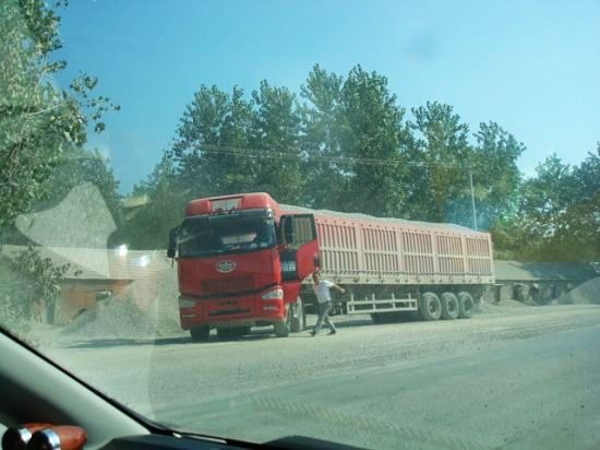 記者還發(fā)現(xiàn)一個(gè)奇怪的現(xiàn)象,很多運(yùn)輸石料的大型貨車,前擋風(fēng)玻璃上都放著一塊“XX運(yùn)輸”、“XX公司”的牌子。那么,這塊小牌子到底有什么作用,背后是否藏著不可告人的目的?