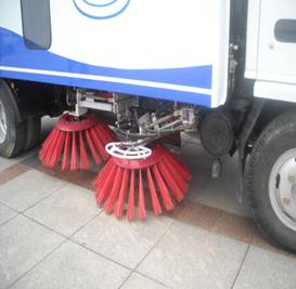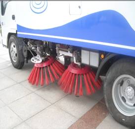 6. “中置四盤刷-后置吸嘴”的結(jié)構(gòu)布置,清掃寬度大,清掃效率高,并有利于清掃裝置與吸嘴的調(diào)整和維護(hù)。由于該結(jié)構(gòu)形式前懸短、吸嘴離地間隙較高,因此轉(zhuǎn)場運(yùn)輸時(shí)整車通過性較好。