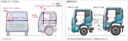 新Condor搭載了UD最新研發(fā)的GH7發(fā)動機(jī)。GH7為直列6缸柴油發(fā)動機(jī),缸徑110mm,行程123mm,排量7.013L,壓縮比17.5,每缸4氣門。GH7共有兩個(gè)型號:GH7TA輸出功率180kw(2500rpm),最大扭矩716Nm(1400rpm);GH7TB輸出功率206kw(2500rpm),最大扭矩883Nm(1400rpm)。GH7發(fā)動采用共軌燃油噴射系統(tǒng),噴射壓力可達(dá)200Mpa以上,并采用新一代高增壓型VNT可變噴嘴渦輪增壓器,電控系統(tǒng)對發(fā)動機(jī)深入精細(xì)的管理,使其具有良好的動力性能和燃油經(jīng)濟(jì)性。GH7除了加裝了SCR催化氧化還原裝置外,還增加了UDPC(UD Particulate Cleaning)UD顆粒物清洗裝置,進(jìn)一步降低氮氧化物(NOx)和可吸入顆粒物(PM)的排放量,以達(dá)到日本2009年出臺的新排放標(biāo)準(zhǔn)。