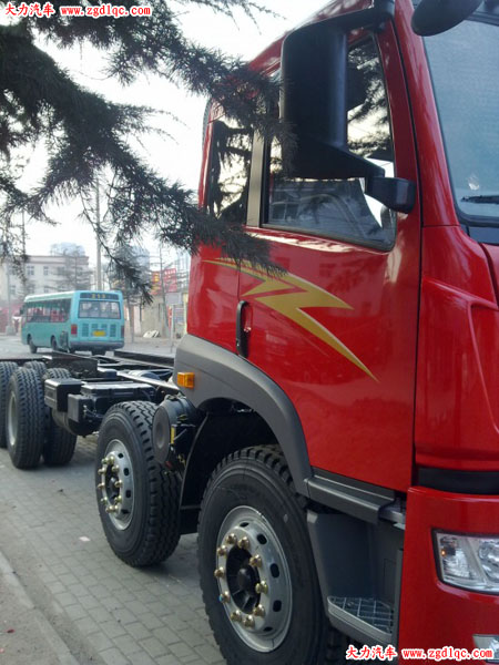 從側(cè)面看,這是一輛自卸車底盤,不過車門上面不是我們熟悉的鷹頭標(biāo)志,現(xiàn)在側(cè)面的“Z”形標(biāo)志是新大威的,難道是工人弄錯了?