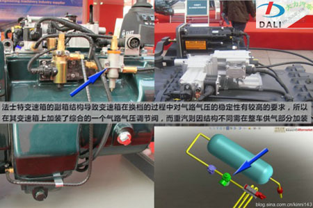 基于以上原因,在變速箱上法士特是提供一個減壓閥,來實現(xiàn)變速箱氣路的整體穩(wěn)定性,如果整車氣源中單獨有一個恒定氣壓的獨立氣源給此系統(tǒng)供氣,那么可以有著很好的效果。