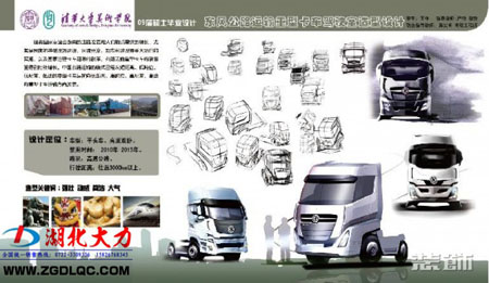 我們?cè)谡搲吹揭唤M東風(fēng)的概念卡車,其中還有幾張油泥模型。依然能夠看到東風(fēng)天龍的影子,后來(lái)從網(wǎng)上查證,這只是清華大學(xué)美術(shù)學(xué)院09年畢業(yè)的工業(yè)設(shè)計(jì)系一名研究生作品,不知道這會(huì)不會(huì)是D760車型的雛形。