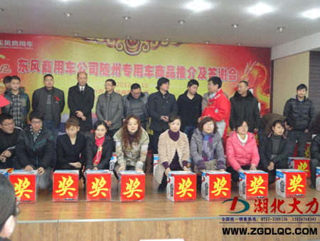 一元復(fù)始,萬象更新。一年一度的東風(fēng)商用車新年答謝會暨2012年新品推介會今日在歷史文化名城隨州隆重召開。來自隨州市曾都區(qū)區(qū)政府、東風(fēng)商用車市場銷售總部、湖北商務(wù)代表處、隨州各大改裝經(jīng)銷企業(yè)以及駐全國市場銷售人員近800名代表出席會議。這次會議由東風(fēng)商用車湖北商務(wù)代表處和湖北圓通聯(lián)合主辦,會議采取團(tuán)拜、產(chǎn)品宣講、頒獎和抽獎相結(jié)合的方式展開。大會向湖北大力尚傳書等2名代表頒發(fā)優(yōu)秀業(yè)務(wù)一等獎,向湖北成龍威劉永財?shù)?名代表頒發(fā)優(yōu)秀業(yè)務(wù)二等獎,向湖北程力公司程阿羅等10名代表頒發(fā)優(yōu)秀業(yè)務(wù)三等獎,同時通過大屏幕現(xiàn)場抽出60名幸運(yùn)獎。