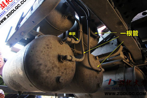 2、看管路:看儲氣筒后面,如下圖所示,右側兩個儲氣筒只有一根管,左側兩個儲氣筒串聯(lián)。