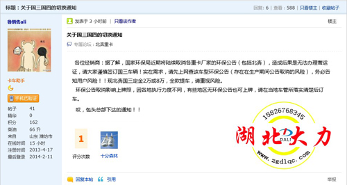 國(guó)三切換國(guó)四對(duì)卡車用戶買車、上牌有著直接的影響。目前,根據(jù)大力汽車論壇用戶“魯銷售ali”發(fā)帖(關(guān)于國(guó)三國(guó)四的切換通知)提供北奔包頭總部下發(fā)北奔經(jīng)銷商的最新信息:近期,國(guó)家環(huán)保局將在近期陸續(xù)取消各重卡廠家的環(huán)保公告,屆時(shí)用戶購買國(guó)三車,將可能無法辦理道路運(yùn)輸證。