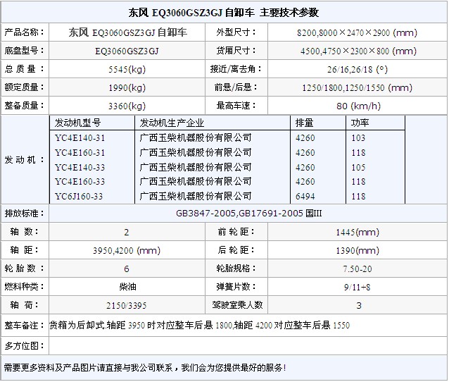 底盤:EQ3060GSZ3GJ,發(fā)動(dòng)機(jī):YC4E140-31 YC4E160-31 YC4E140-33 YC4E160-33 YC6J160-33