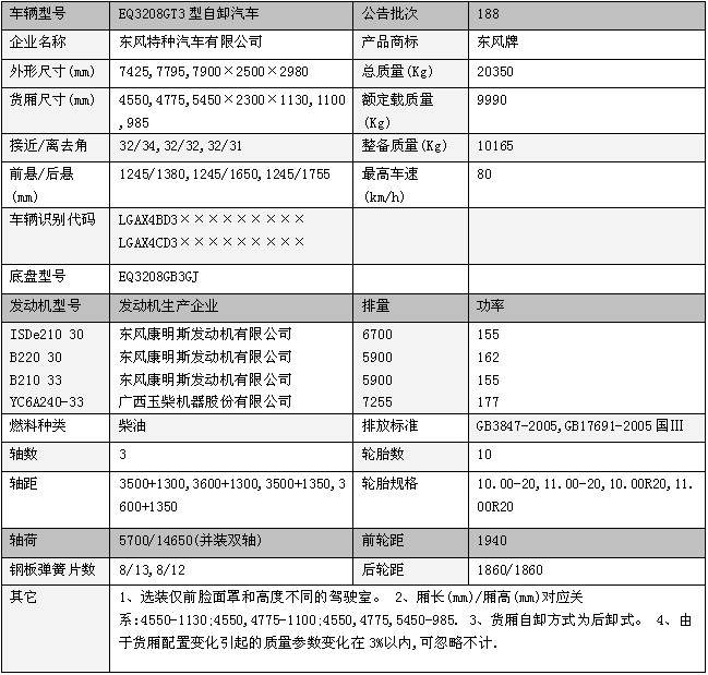 底盤:EQ3208GB3GJ,發(fā)動機(jī):ISDe210 30 B220 30 B190 33 B210 33