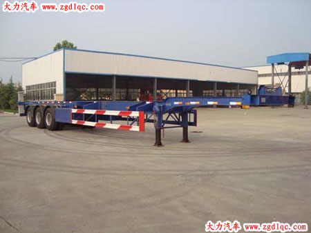 載貨部位為框架結構且無地板,專門運輸集裝廂的半掛車,第一第三車是拉散貨的,中間拉配貨的全封閉箱車!
