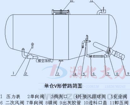6、卸料裝置:可將裝料罐體與儲(chǔ)存塔(倉(cāng))管道相連,由蝶閥控制,用于輸送物料。